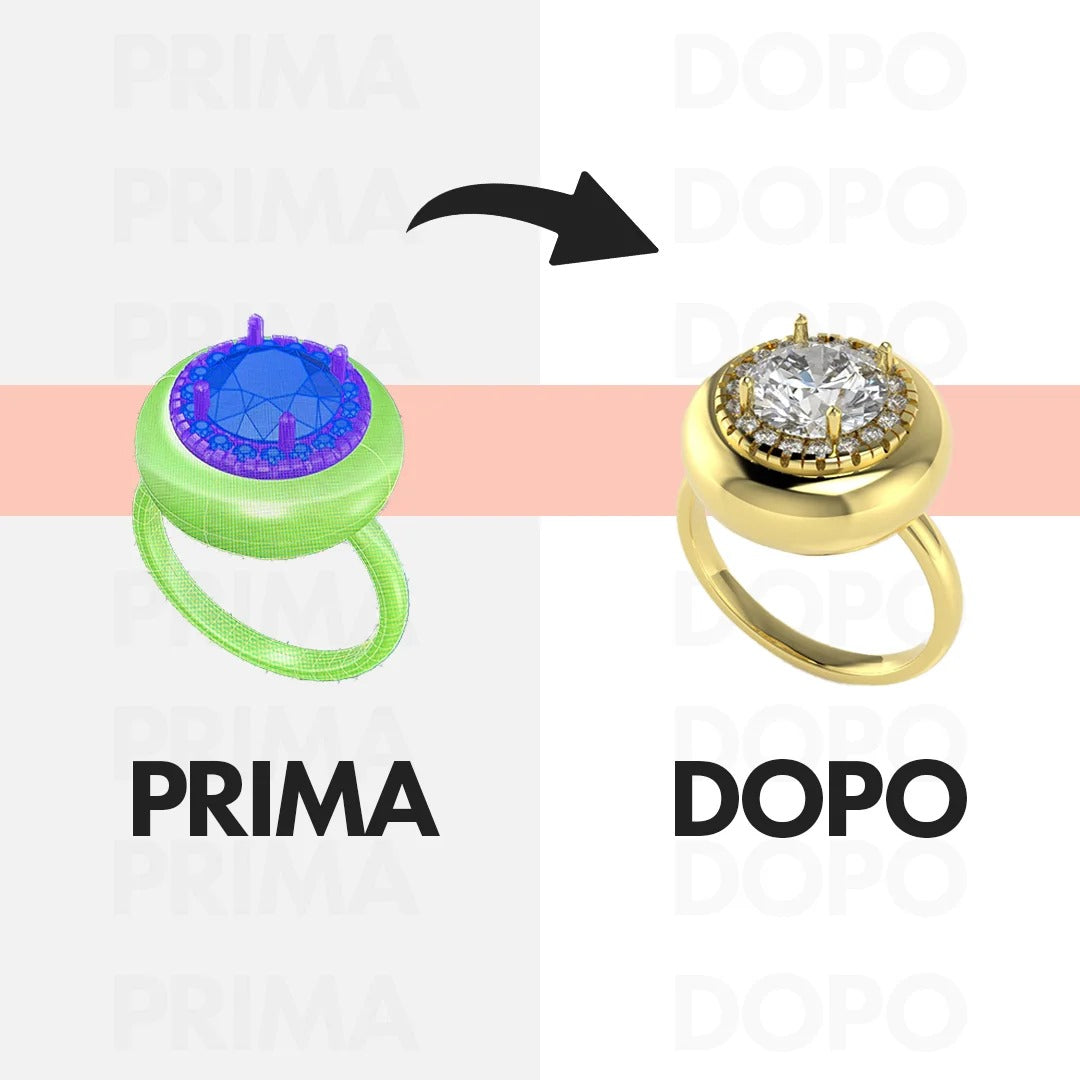 Con un design distintivo in mano, procediamo con la selezione meticolosa dei materiali. Scegliamo solo metalli e pietre preziose di alta qualità, ponendo le basi per una creazione che promette non solo bellezza, ma anche durabilità e raffinatezza.