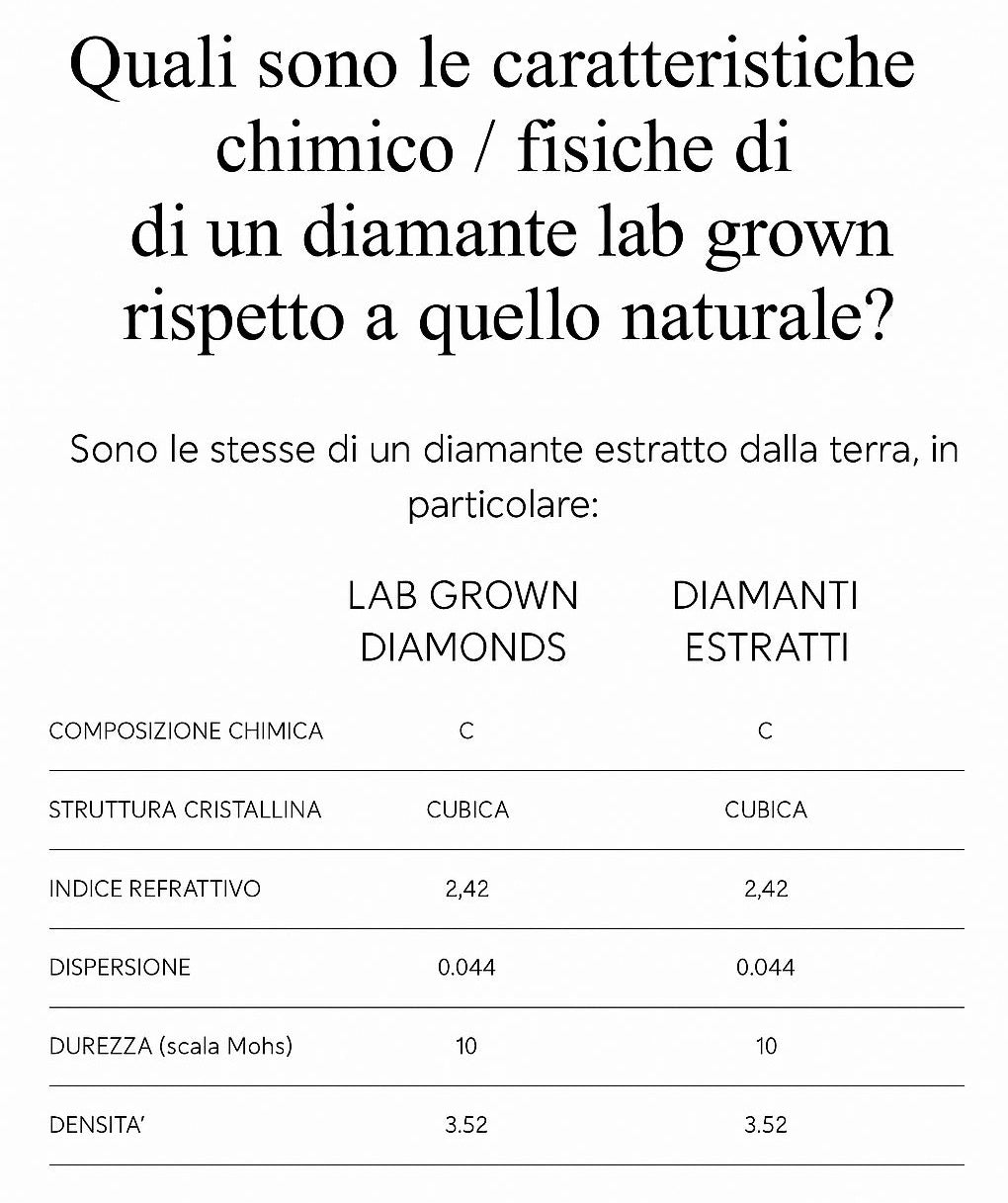 Tutti i diamanti lab-grown da 0,50 carati in su sono accompagnati da certificazione internazionale rilasciata da uno dei tre enti più autorevoli al mondo: IGI, GIA o HRD.